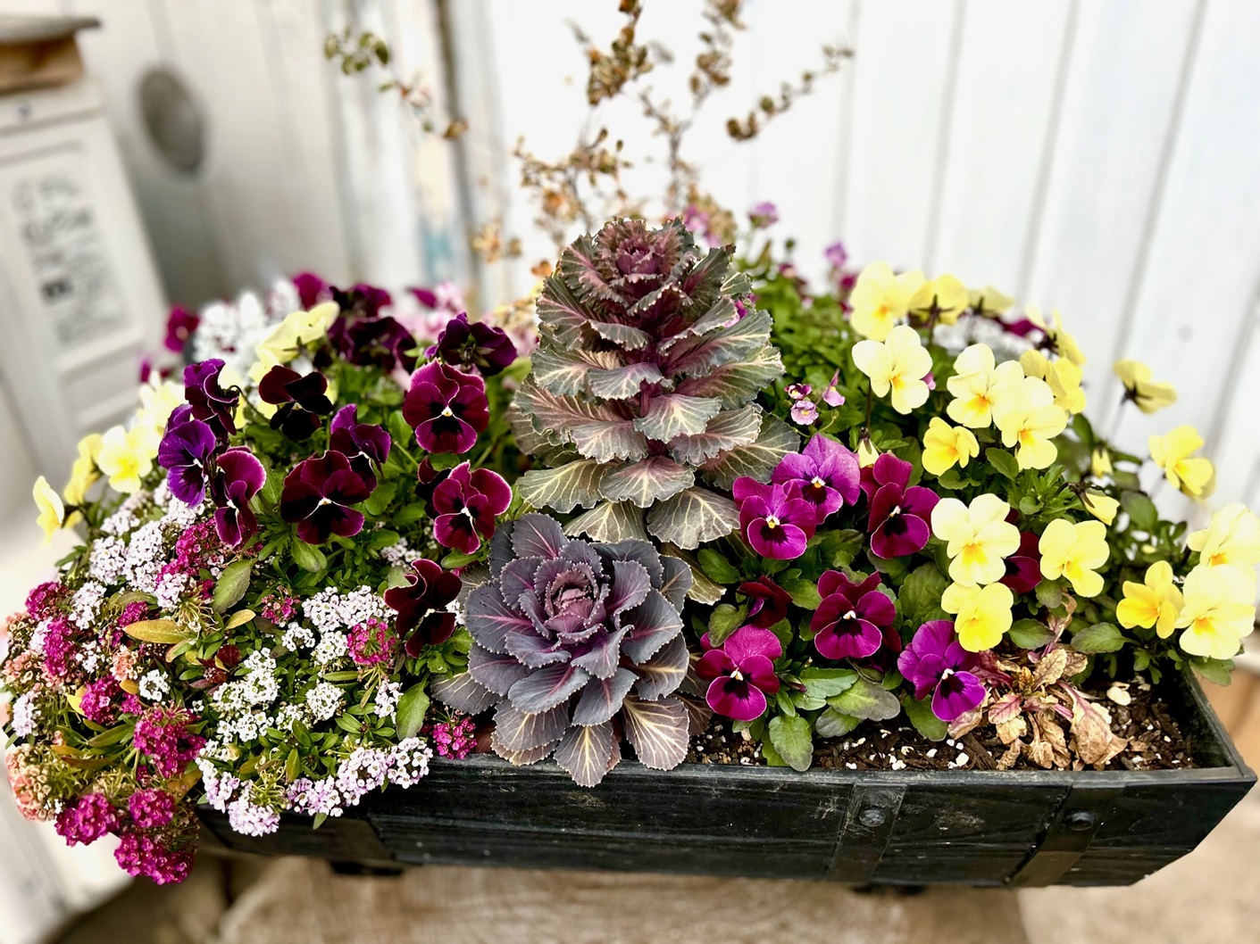 スイートアリッサム、ビオラ、葉ボタン