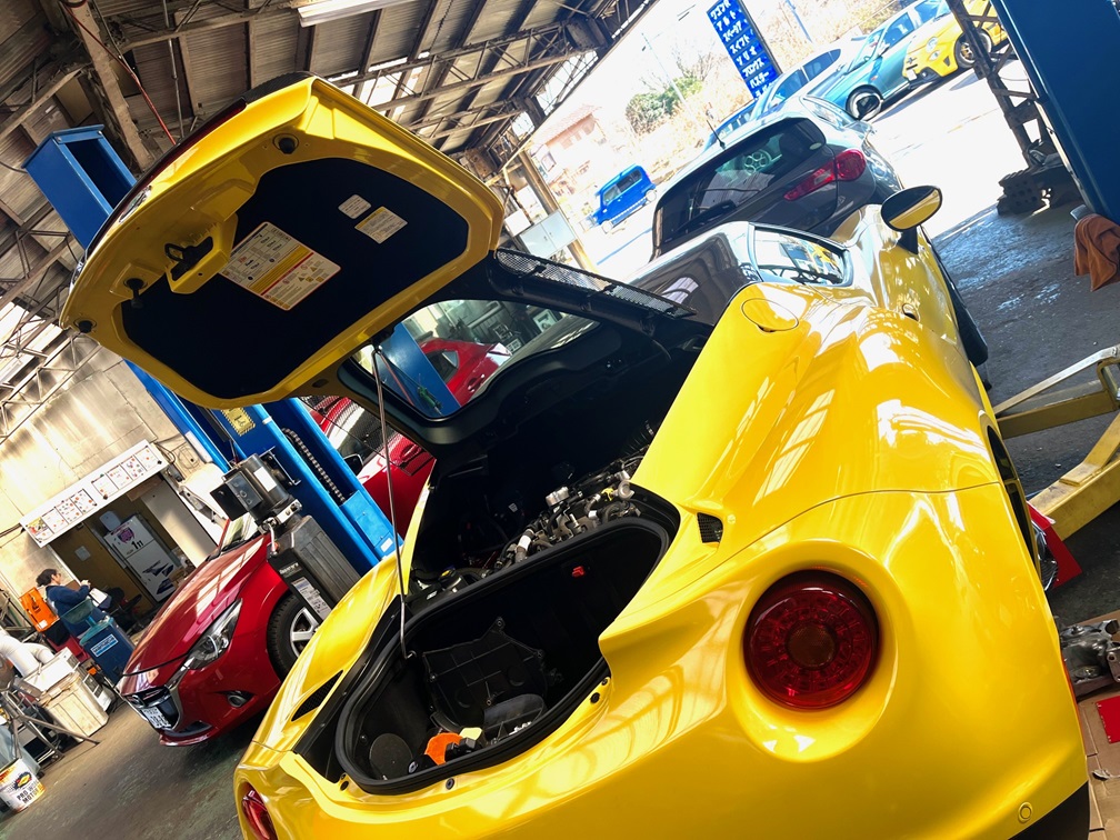 パワーユニット取り外し作業を新人リョウタ君がお手伝い