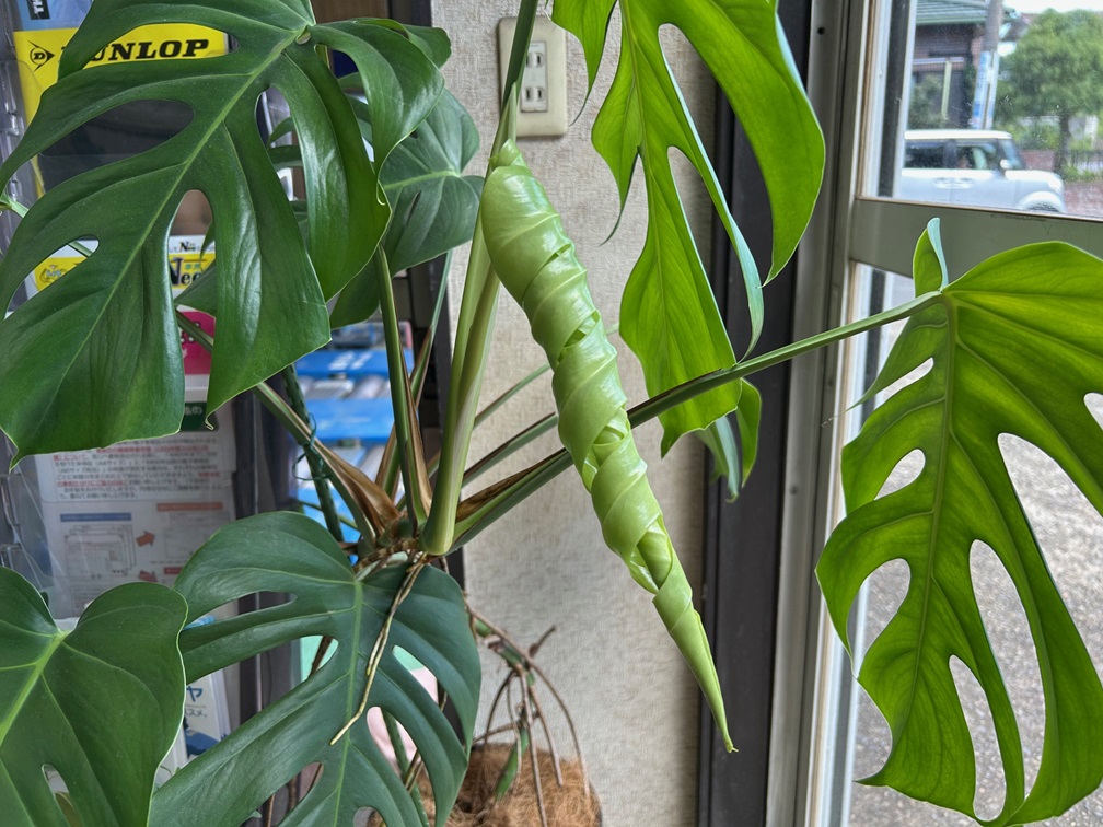 事務所のモンステラの葉が開く前の状態を初めて見ました