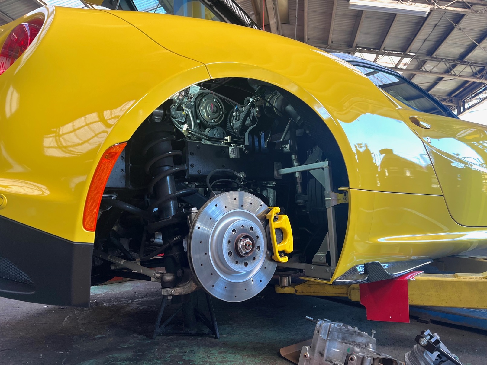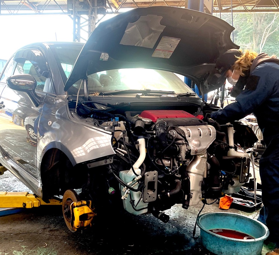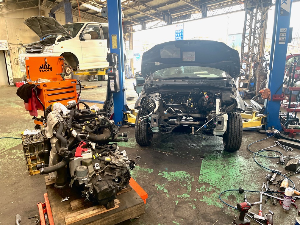 パワーユニット取り外し作業を新人リョウタ君がお手伝い